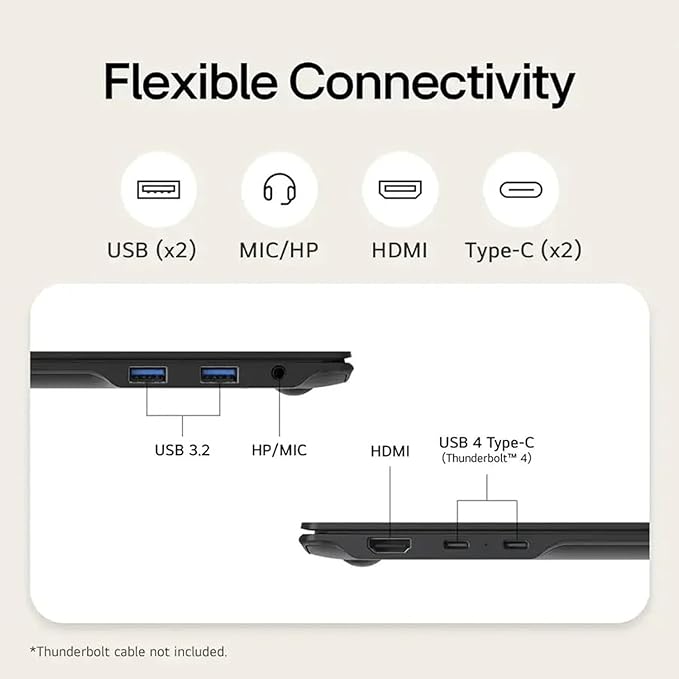 - Pro-Grade Connectivity & Intel Arc Graphics: Equipped with Thunderbolt 4 (x2), USB 3.2 (x2), HDMI, Wi-Fi 7, and Bluetooth, plus Intel Arc graphics for enhanced gaming, content creation, and 5K display support – the LG gram 17 maximizes productivity anywhere