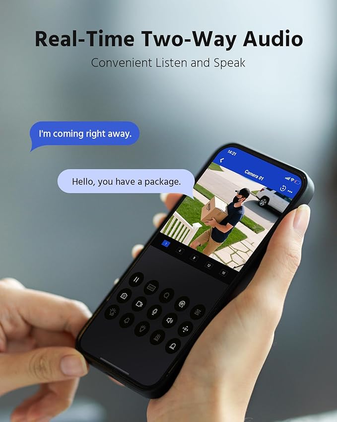 - Two-Way Audio for Real-Time Talk: With a built-in mic and speaker, the 4K camera for home security enables real-time two-way talk and records video with synchronized audio. Never miss a detail, ensuring evidence-rich monitoring.