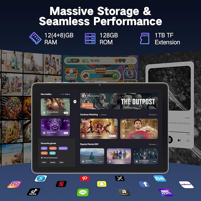 - Huge Storage for All Your Family Memories - Never delete precious photos or videos to free up space again! With 128GB of storage (expandable to a massive 2TB), you can store ten thousands of family photos, download movies for road trips, store ten thousands of family photos,and keep all your important documents handy. The tablet 128GB allows you to fully recollect wonderful moments and enjoy entertainment even on the go