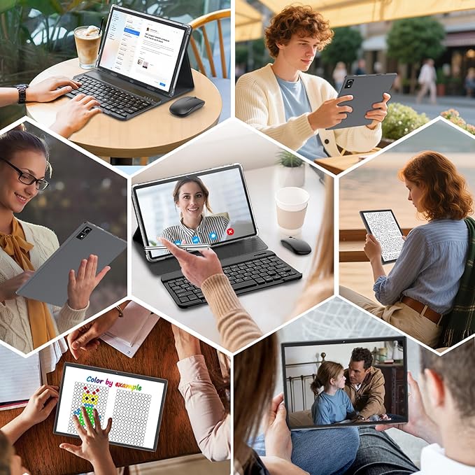 - 【8000mAh Battery】Tablet with keyboard features an 8000mAh built-in battery for enhanced battery life. Whether you're lounging on the couch watching your favorite movie, reading an e-book during your daily commute, or participating in a video conference, the battery keeps you powered up