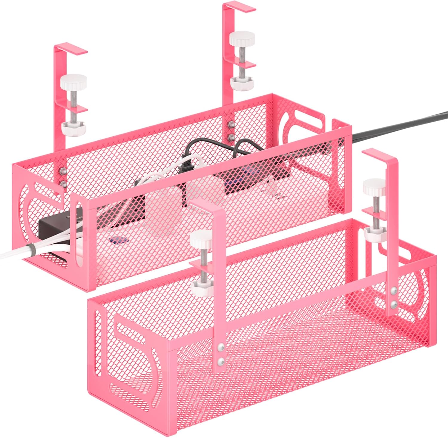 Under Desk Cable Management Tray, 15.7'' No Drill Steel Desk Cable Organizers, Wire Management Tray Cable Management Rack (2 Packs-Pink)