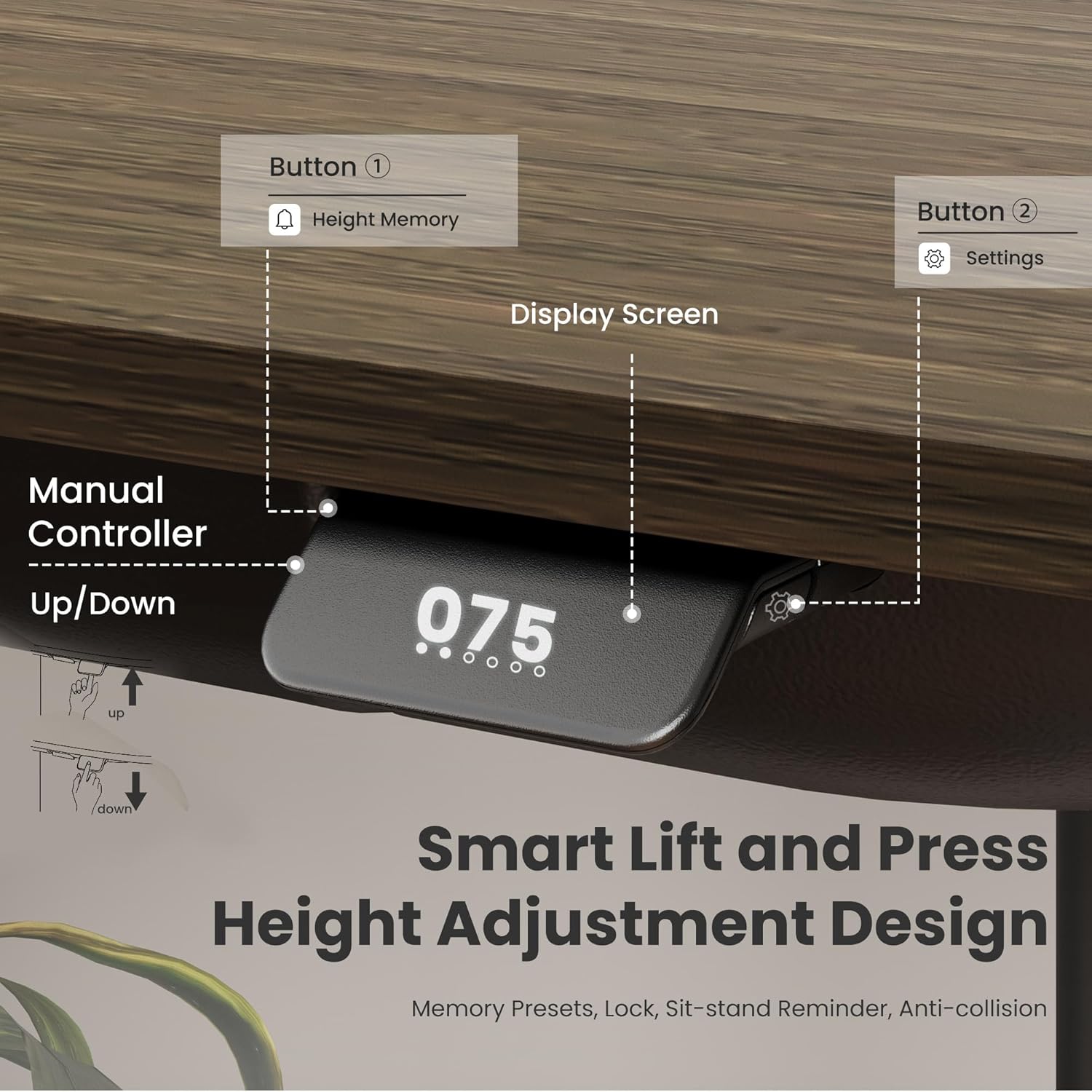- ăPremium Whole-Piece Desktop & Sturdy FrameăCrafted with FSC-certified MFC and natural veneer, the one-piece desktop offers a seamless, elegant surface with stunning natural wood grain. Paired with a carbon steel frame weighing 124 lbs, it delivers rock-solid stability and long-lasting durability. Suitable for any use scenarioâthis adjustable desk can be used as an office desk, studio desk, study desk, gaming desk, computer desk and more!