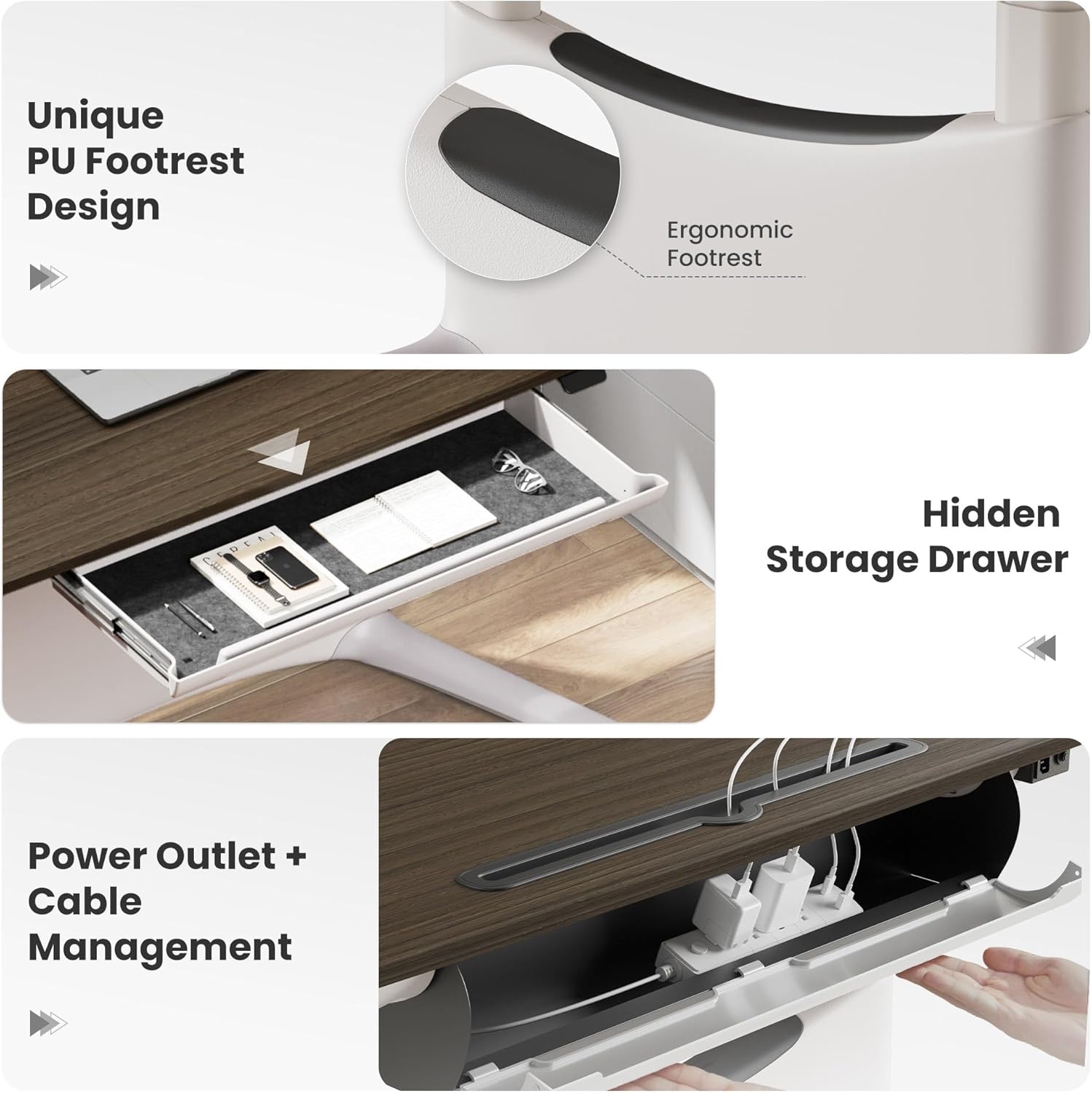 - ăErgonomic Footrest for Flexible PostureăWhether sitting, standing, lounging, or cross-legged, the built-in footrest supports your legs in any position. Reduce pressure, enhance comfort, and boost productivity.