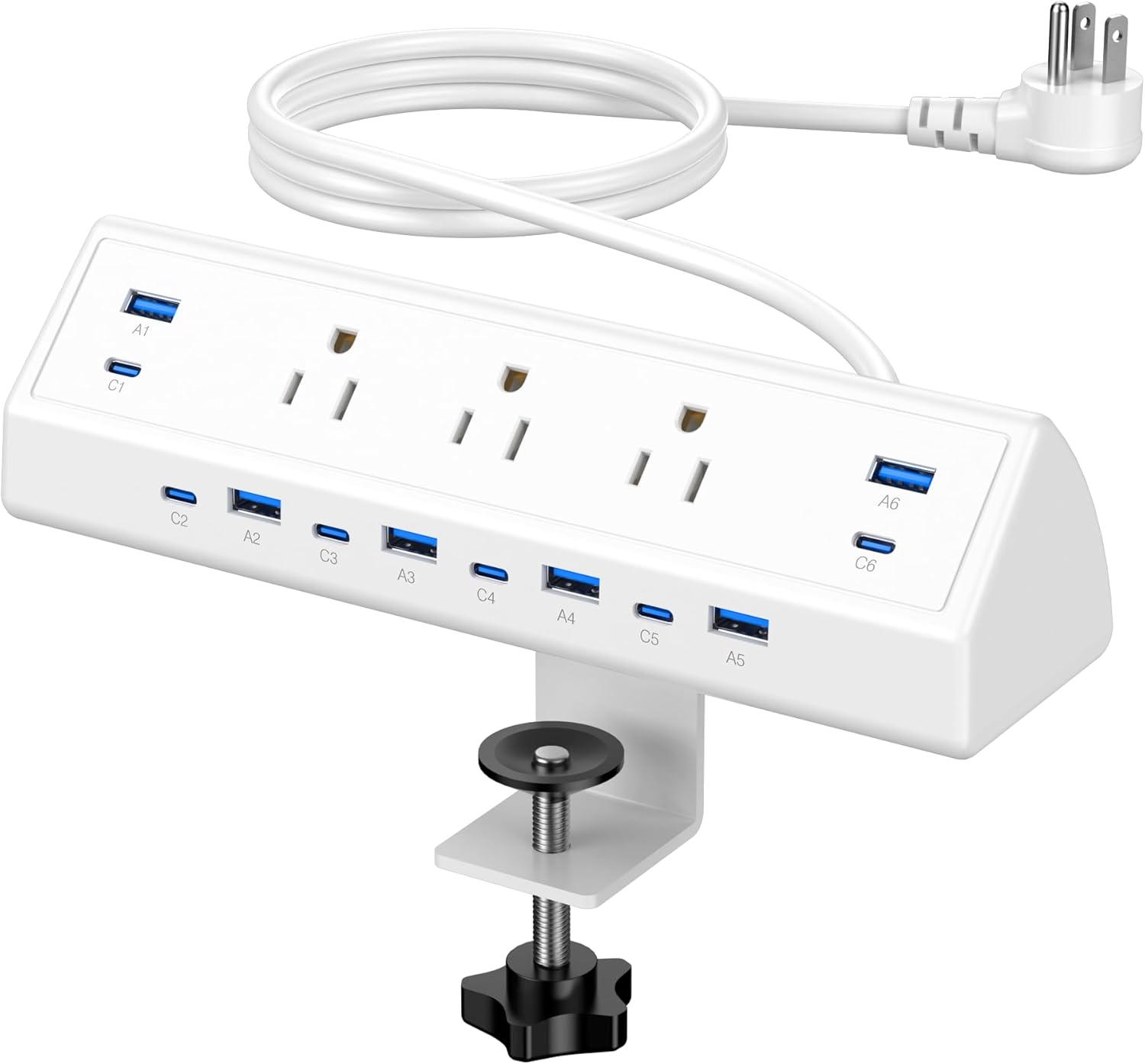 - Versatile for Any Room & Setup:More than just a desk organizer! The flexible clamp easily attaches to nightstands, workbenches, kitchen counters, or standing desks. Itβs the perfect solution for bedroom charging without cable clutter, a tidy workshop setup, or adding power anywhere an outlet is out of reach.
