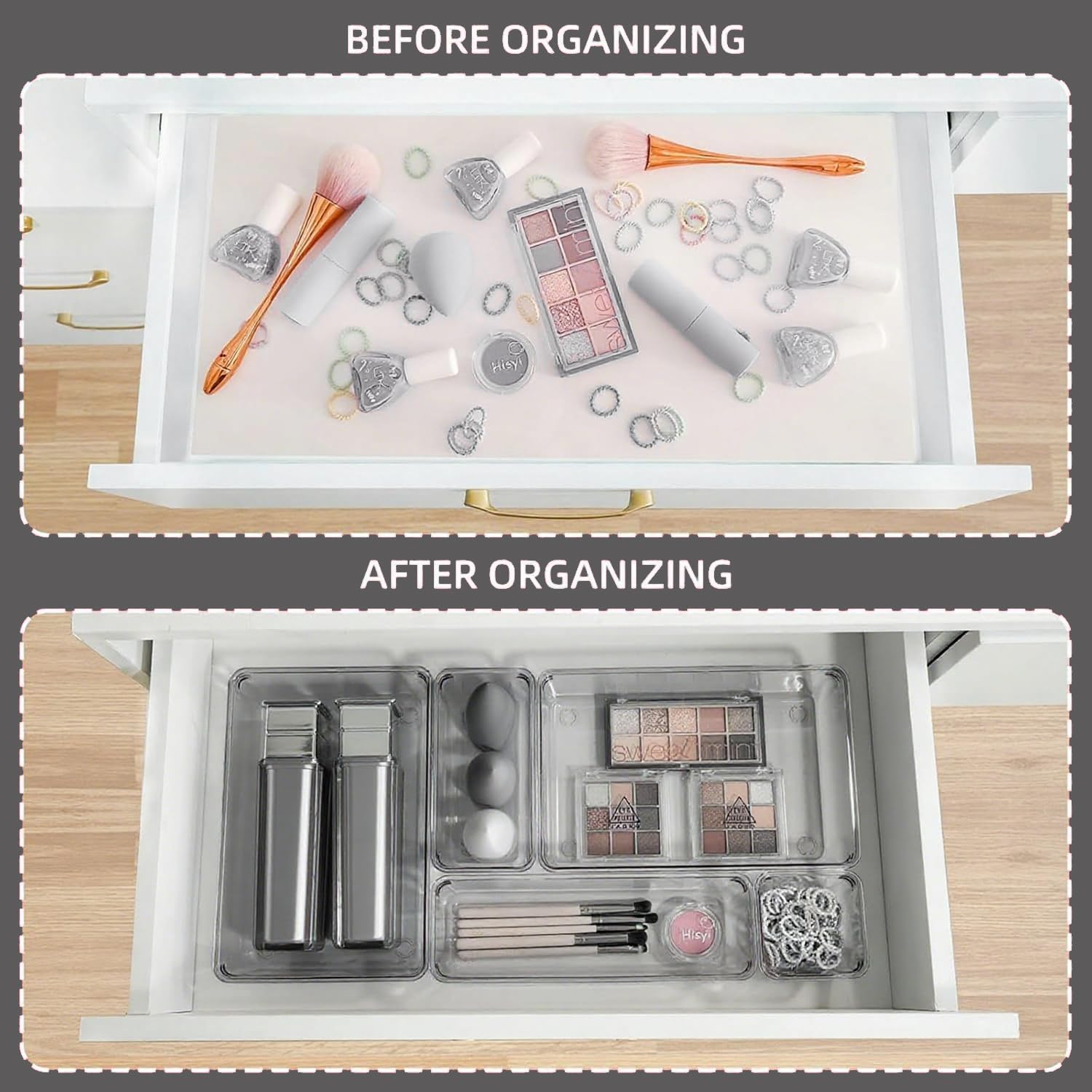 - 【EASY TO CLEAN】 Our acrylic drawer organizer is easy to wipe clean with a damp cloth, convenient for you to use it in your daily life and make your room look more beautiful and organized.