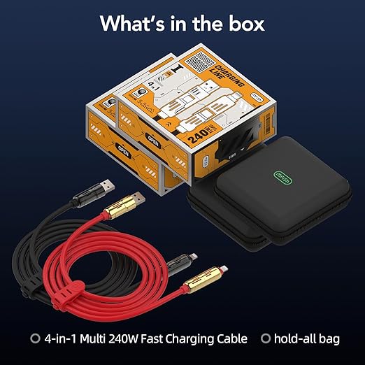 - 4-in-1 Universal Cable – One Cable. Every Device. Eliminate cable clutter with the MFish 4-in-1 charging cable featuring USB-C to USB-C, USB-C to Lighting, USB-A to USB-C, and USB-A to Lighting connectors. Designed to power nearly all your tech essentials—iPhones, iPads, Samsung Galaxy, MacBooks, laptops, tablets, and more.