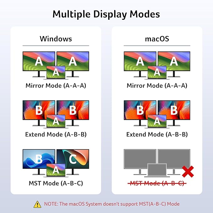 - ใKindly NoteใThis dual monitor hdmi splitter comes with a 20 cm (0.66 ft) cable. Please ensure it meets your setup requirements. For Mac Users: Dual display support is limited to AAA or ABB configurations and does not support ABC.