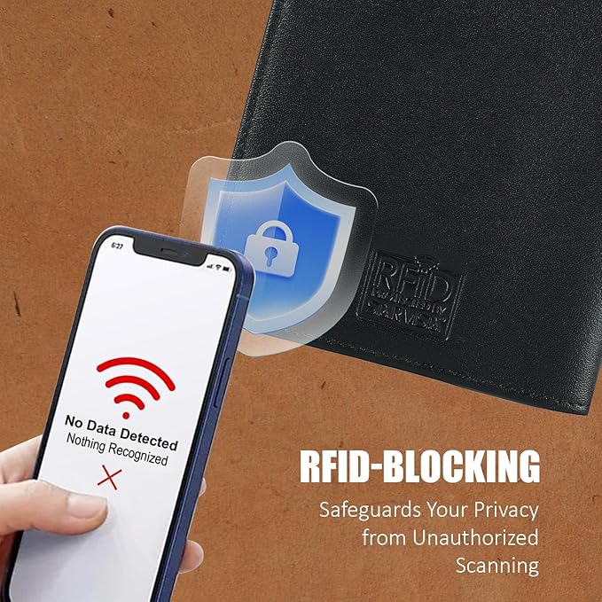 - RFID BLOCKING -- RFID blocking material safeguards your digital assets from unauthorized scanning