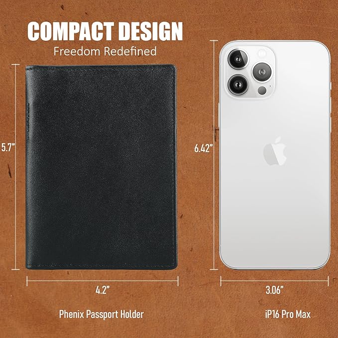 - SLIM DESIGN -- Slim and compact passport holder with bifold construction for maximum portability. DIMENSIONS: 5.8”(L)x4.2”(W)x0.4”(H)