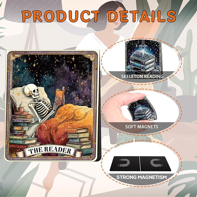 - 【Unique Design】These skull magnetic bookmarks combine mysterious and retro aesthetic styles, printed with classic patterns such as skeletons, roses, books, bats, etc., making you feel as if you are in the mysterious atmosphere of tarot cards when reading, making your reading experience richer and unique