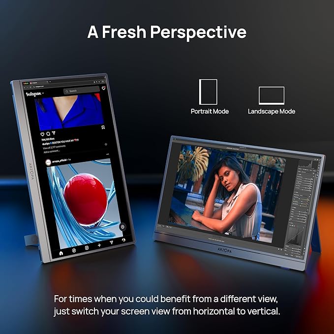 - [Superior 17.3 inch Large Display] ARZOPA Z1C PLUS portable laptop monitor, larger screen offers a more perfect 16:9 proportion which providing extra visual space for multitasking, gaming, or content viewing. The increased size eliminates the cramped feel of smaller monitors, making every interaction comfortable and immersive