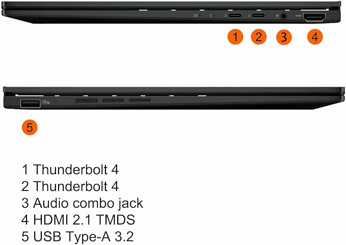 - 2 x Thunderbolt 4, 1 x USB-A 3.2, 1 x HDMI 2.1 TMDS