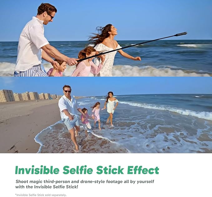 - Invisible Selfie Stick Effect: Yes! You can create unbelievable third-person shots on your own! The selfie stick automatically disappears from your footage like magic. No photographer? No problem! Invisible Selfie Stick is not included.