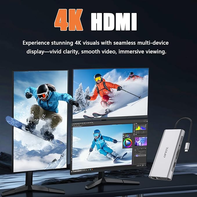 - 【Dual Display with HDMI & VGA】Supports 4K HDMI output and 1080P VGA output, enabling mirror or extended screens to TVs, monitors, or projectors. Ideal for multitasking like video editing, presentations, or gaming setups. Connect HDMI + VGA simultaneously for dual-screen productivity.