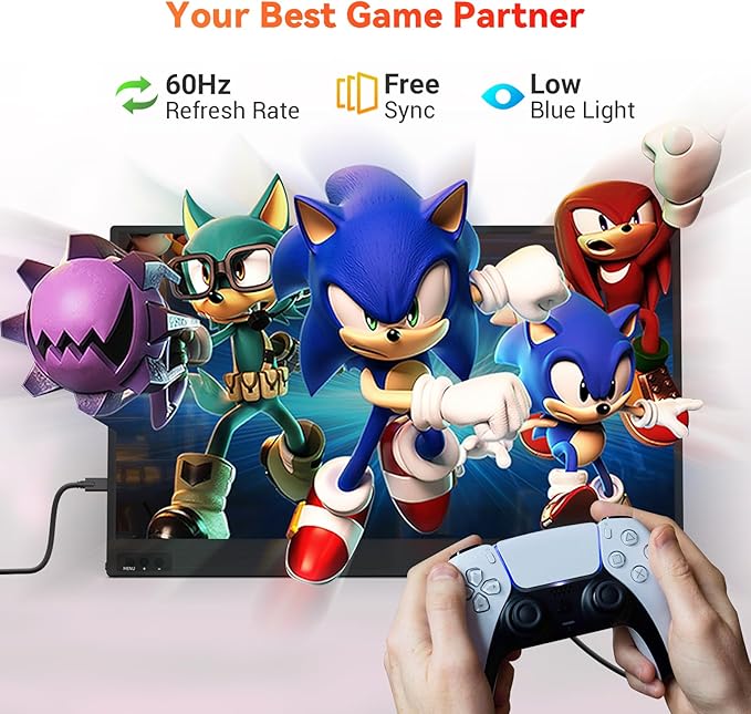 HotYeah Portable Monitor, 15.6-in 1080P FHD Laptop Monitor USB-C HDMI External Computer Display FreeSync IPS w/Kickstand, 2nd Screen for Laptop PC Mac Phone Tablet Switch PS5 Xbox