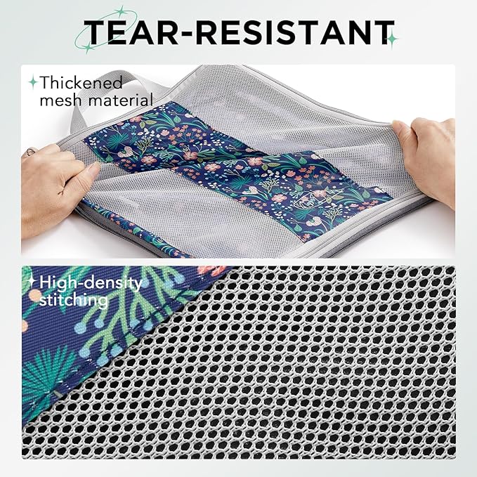 2 Set Compression Packing Cubes for Travel Essentials,Compressible Expandable Packing Cubes for Suitcase,OlarHike Luggage Organizer Bags for Travel(Dark Blue Floral)