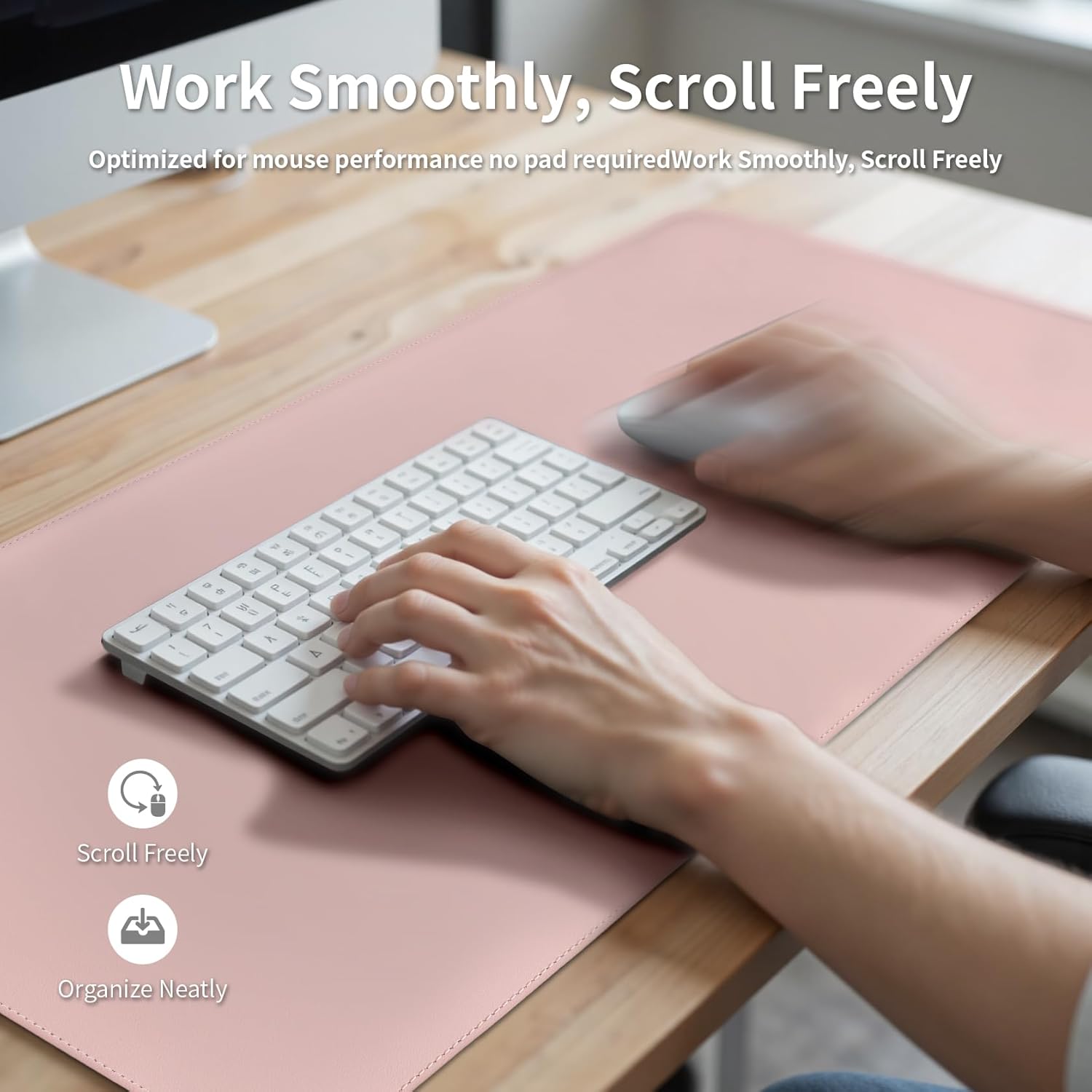 Oversized Non-Slip Desk Pad Protector – Grips Desk Firmly, Anti-Slip Like You've Never Seen! Vegan Leather Waterproof Laptop Mat for Keyboard & Mouse – Large Office Pad– Sakura Pink