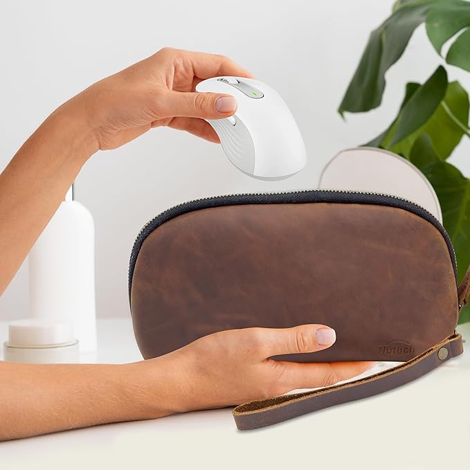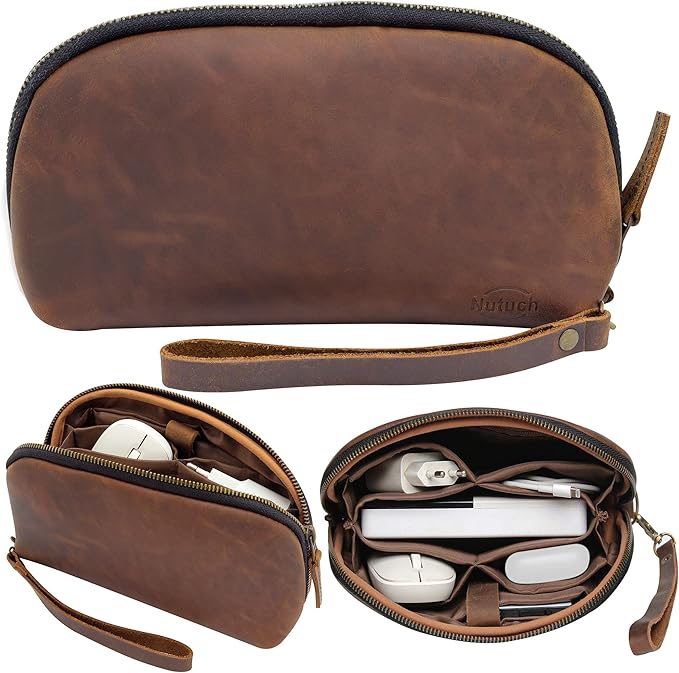 - The Nutuch Leather Tech Pouch is crafted from premium full-grain leather, offering exceptional durability, a soft feel, and a unique texture that ensures long-lasting elegance. Its two-tone design adds a touch of sophistication to this stylish tech organizer.