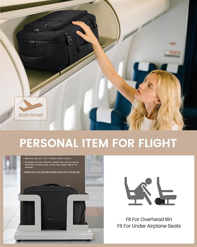 - 【Effortless Travel Design】This backpack meets airline personal item limits. The 180° opening makes airport security checks a breeze. Securely attach your backpack to your suitcase using the luggage strap and enjoy hassle-free mobility.