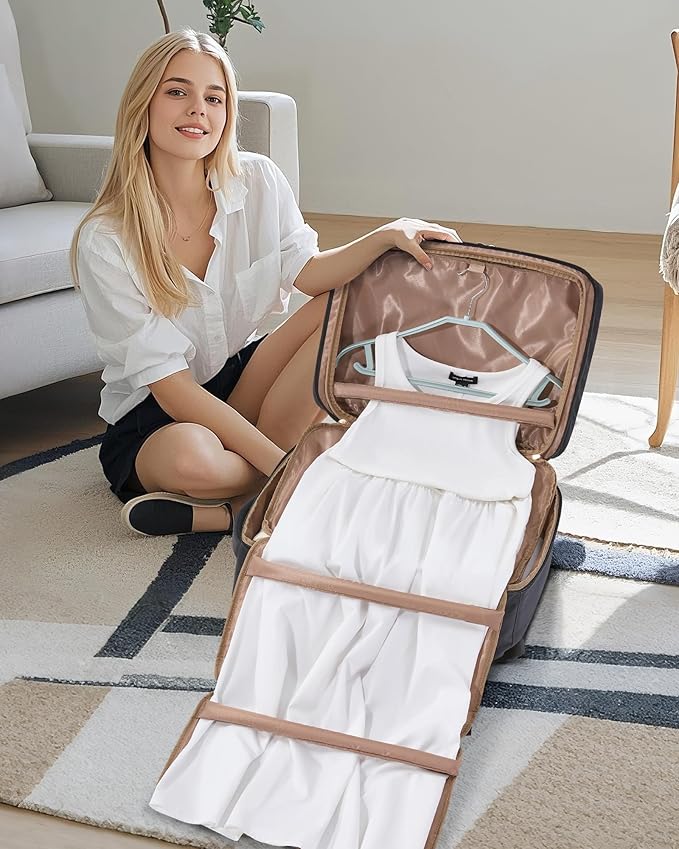- 【Travel Backpack&Garment Bag】 This innovative backpack seamlessly combines a travel backpack with a garment bag, featuring foam roll bars that securely hold suits, shirts, and dresses in place, keeping them wrinkle-free during trip and transit.