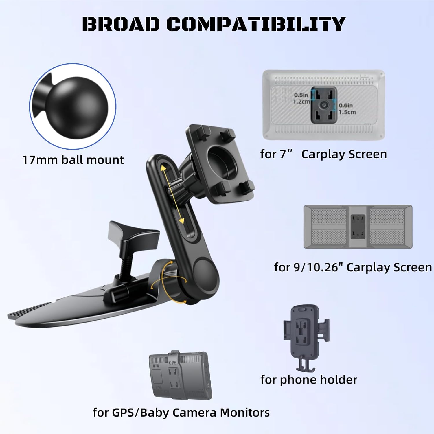 CD Slot Mount for CarPlay Screen Adjustable Arm and 360° Rotating Universal Head 17mm Compatible with in-Car Monitors CD Slot CarPlay Mount