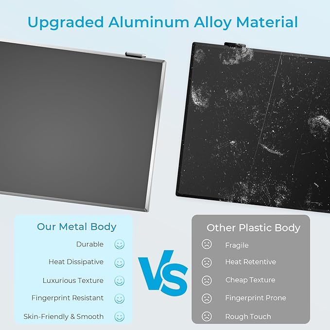 - 【Lightweight & Durable Aluminum Alloy Shell】The body shell of this portable monitor for laptop is made of aerospace grade high-quality aluminum alloy material, wear-resistant matte finish for exceptional durability, heat dissipation, anti-fingerprint, and scratch-resistant surface treatment, combining elegant aesthetics with rugged durability for long-lasting use. The stand is molded from high-strength plastic. This metal-plastic combination reduces overall weight while ensuring stability setup.