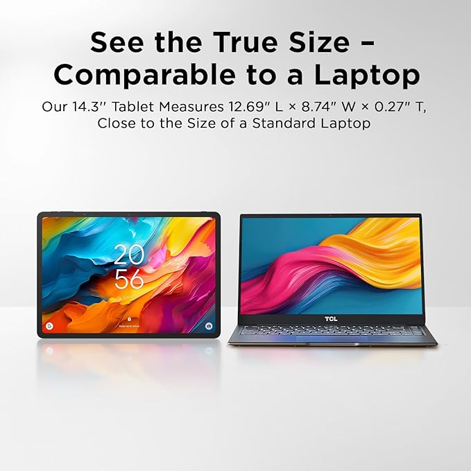 - Strong Performance for Multitasking & Multi-Window Productivity: Driven by the MediaTek Helio G99 processor and running Android 14, TCL electronics tablets combine 256GB of storage with 8GB RAM, plus an additional 8GB of expandable memory, handling study, work, and creative apps with ease. TCL’s smart UI boosts productivity by supporting screen mirroring, extended displays, floating windows, and split screen