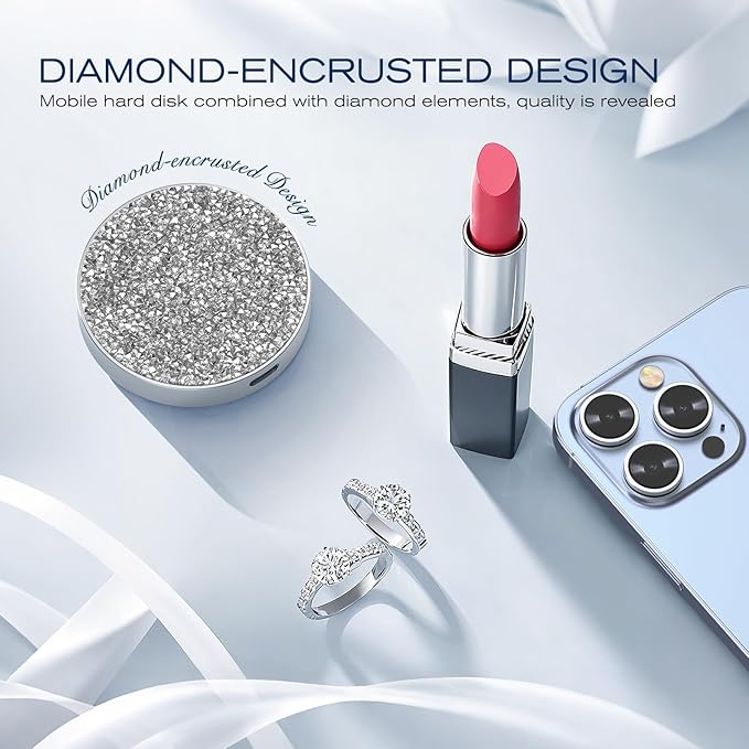 - Shining Elegance, Lasting Durability: The DIGIERA Diamond-Edition SSD combines a luxurious diamond-inspired exterior with a rugged aluminum casing, resisting shocks (1,500 G), vibrations (10–2,000 Hz), and drops up to 3.94 ft. Weighing only 1.58 oz and measuring 2.28 x 0.46 in, this ultra-portable SSD fits easily into your pocket or purse—perfect for professionals who want both style and reliability on the go