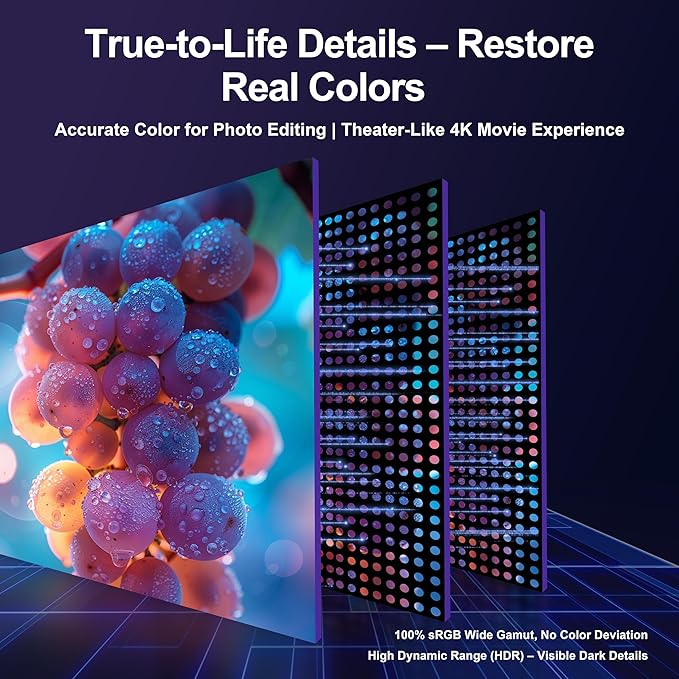 - 【4K Ultra-HD Picture Quality】Equipped with a 15.6-inch IPS screen and 3840×2160 ultra-high resolution, combined with 100%sRGB wide color gamut, it delivers color reproduction highly close to real scenes and presents delicate details. Whether you're enjoying rich picture layers while watching movies, viewing clear document content during work, or ensuring accurate color rendering for design tasks, it adapts easily