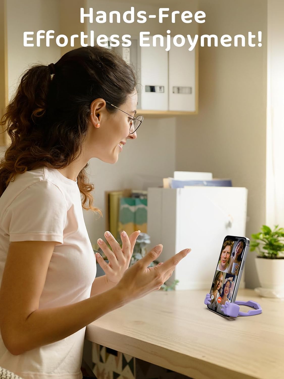 - Patented 360° Rotation & Adjustable Angle Phone Holder for Desk: Discover unparalleled viewing flexibility with our CALDEVER peace sign thumbs phone stand, featuring an exclusive 360-degree rotating head and unique adjustable wrist angle; Seamlessly switch between horizontal and vertical screens, finding your perfect 0-40° viewing angle for any task; This universal cell phone holder ensures ultimate stability for your phone or iPad mini, making it the ideal phone stand for desk or table