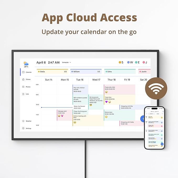 - 【Manage from Anywhere】: Stay connected with the powerful eCalendar App. Access and manage your calendar on the go, with free features like a photo frame, chore chart, dinner plan, grocery list, and more. Paid functions like Magic Import offer advanced tools tailored for users with special needs.