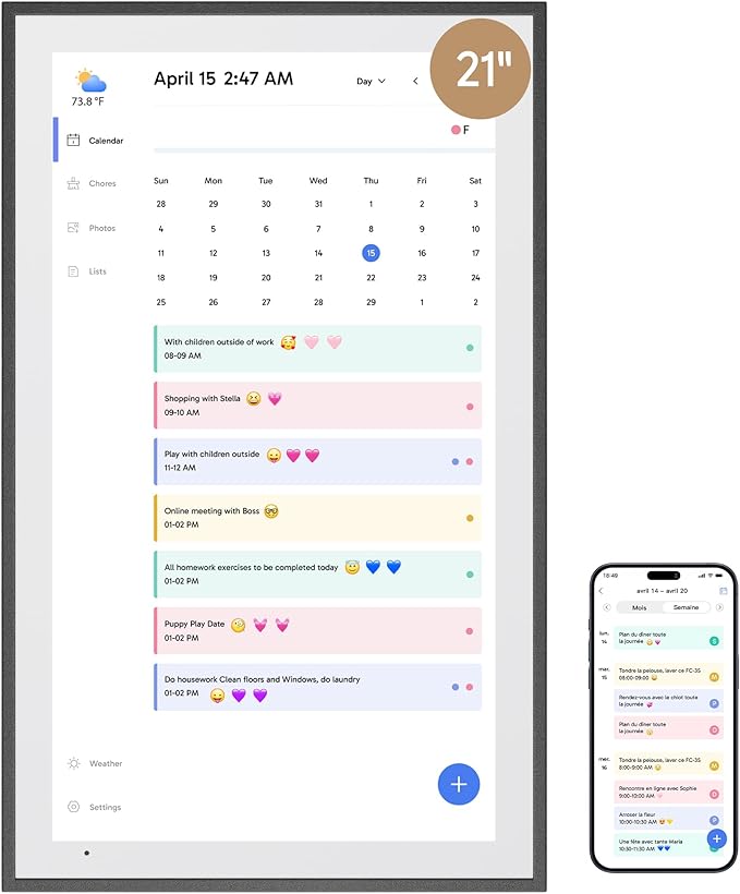 - 【Charming Digital Picture Frame】: When not in use, your smart calendar transforms into a beautiful digital picture frame. Showcase treasured family photos on the crystal-clear 21.5" large touchscreen, adding a touch of elegance to any room as modern home decor.