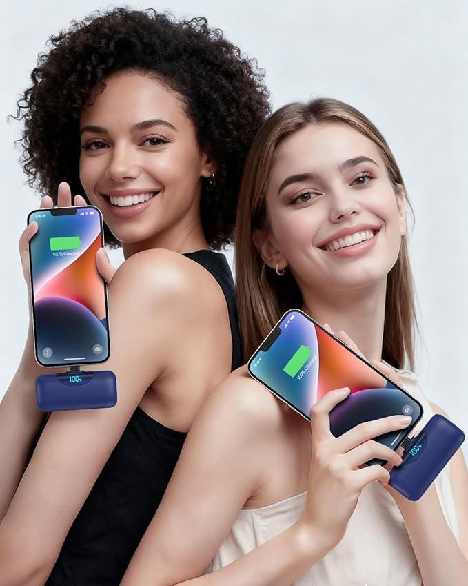 - 🛡【Advanced Pass-Through Technology & Quad-Protection Safety】This mini power bank supports pass-through charging, you can charge your iPhone while charging the power bank. Advanced Intelligent Temperature System safeguards your iPhone’s battery health. Features quad-layer protection against over-charge, over-voltage, over-current, and short circuits – charging safely made simple.