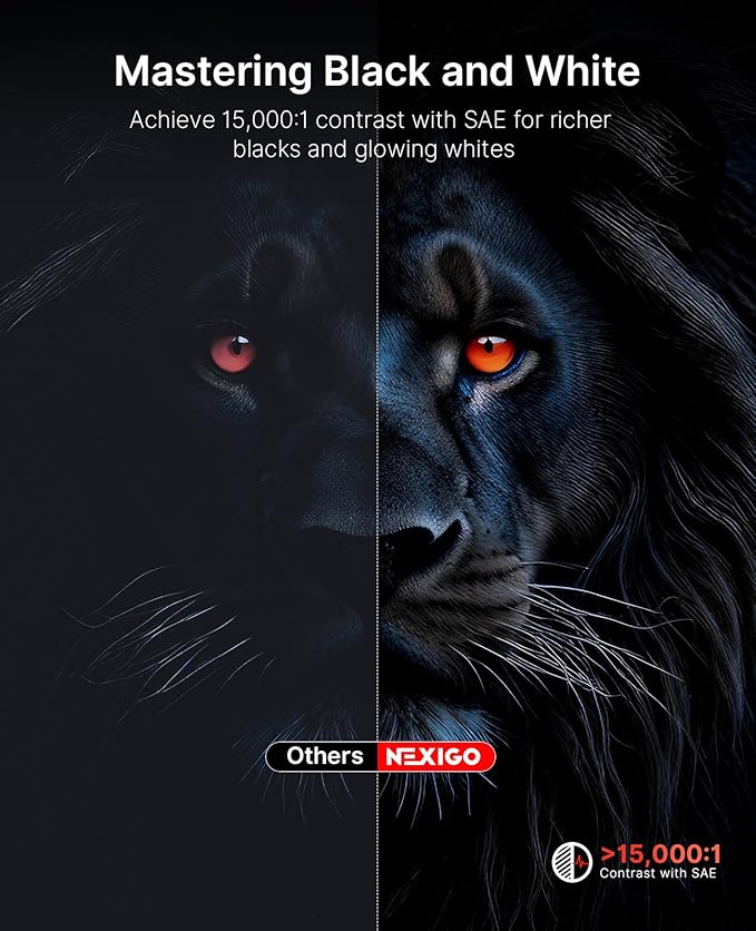 - 【Scene Adapt Engine】The Scene Adapt Engine (SAE) is a new image processing technology that dramatically improves the contrast and detail of the visuals. With the SAE, the Nova Mini delivers ultra-deep blacks and brilliant highlights with a contrast ratio over 15,000:1. It adjusts laser brightness in real time based on content, enhancing image depth while cutting energy use for the perfect blend of performance and efficiency.
