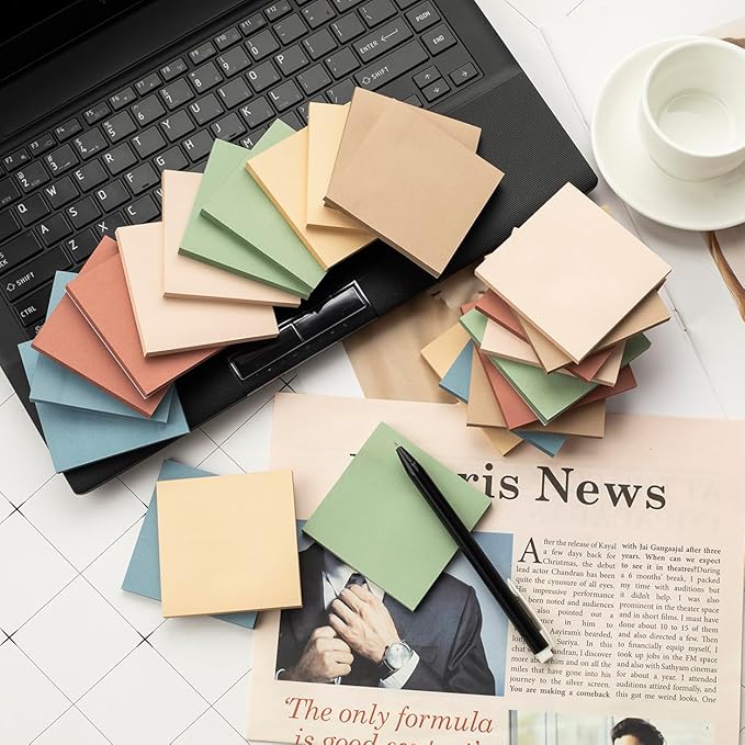 (12 Pads) Sticky Notes 3x3 inch, Self-Stick Pads Vintage Colors Sticky Note, Recyclable, Easy to Stick for Home, Office, Notebook