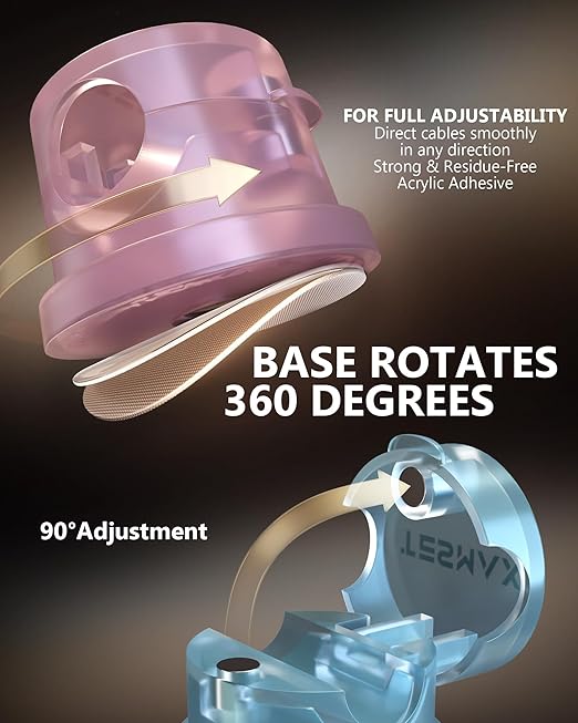 - Latest 360° Rotatable Design: Tired of cables getting stuck or popping out with traditional clips? Our Cable Clips 360° swivel design is a game-changer. Easily adjust your cable's direction with this magnetic cable holder's fully rotatable base, ensuring flexibility and neat cable organization. Magnetic cable management clips prevents damage, keeps cords in great shape, and ensures your nightstand, office desk, or workspace stay tidy