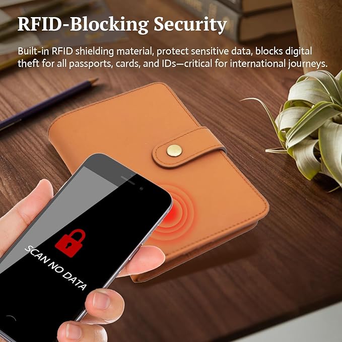 - 【RFID-Blocking Security】Designed with built-in RFID shielding material, protect sensitive data with this RFID passport holder for travel. Blocks digital theft for all passports, cards, and IDs—critical for international journeys.