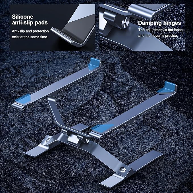 - Sturdy & Stable: The office laptop stand is totally made of thickened aluminum alloy, so the stand is sturdier and has less wobbly. The silicone on the holder hands sticks tightly and ensure your laptop stable on the stand. We also have silicone pad to prevent the stand from slipping on your desk.