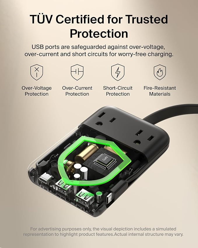 - Included Components : 1 x 2-Outlet Charging Station with USB Ports and USB-C Cable 70W