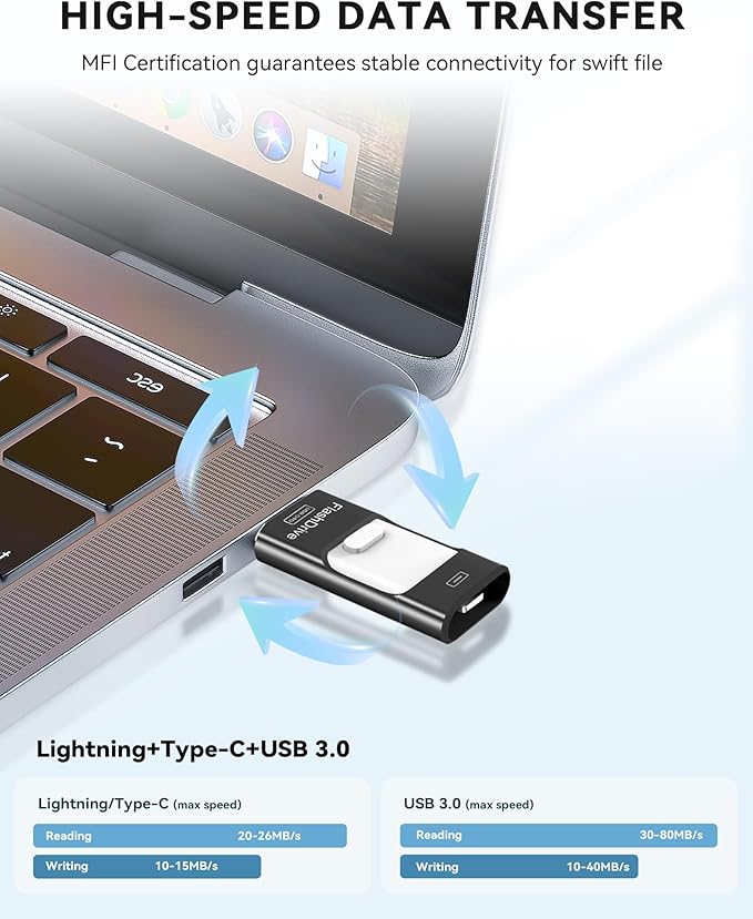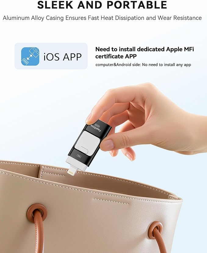 - Blazing-Fast Transfers Anywhere : Equipped with upgraded high-speed chips, this iphone storage flash drive lets you transfer massive files in seconds—no WiFi, no data cables needed. Save time when sharing photos or moving large video projects, whether you’re traveling, working, or creating content.