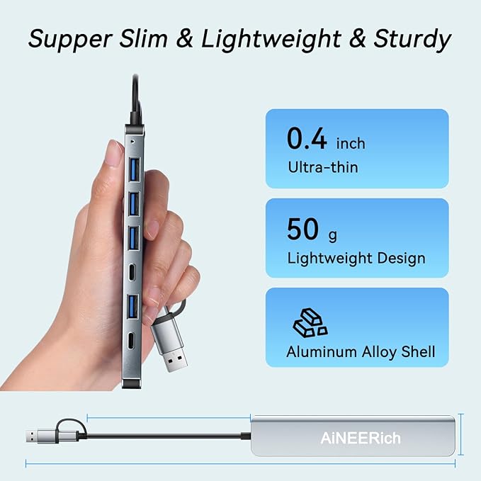 - 【Type C & USB A Dual Plug】: This multi port usb hub is the newly upgraded version different from others.The combination of USB-A and USB-C ports is designed to allow one device to compatible with variety macbook pro, imac, ipad, computer, laptops, usb-c smartphones and other devices simultaneously.This usb port hub multi-functional, plug-and-play, no need for additional driver installation.