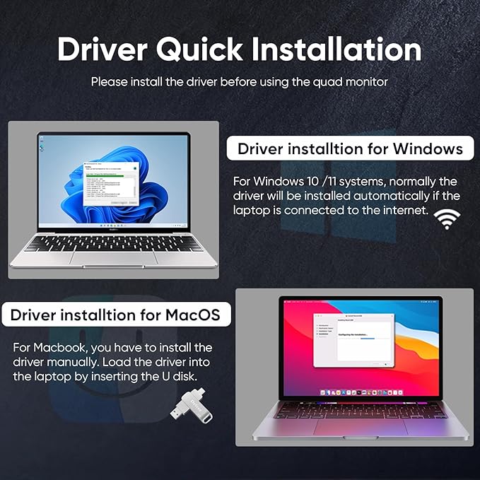 YUTOO 4 Screen Laptop Monitor Extender | for M1 M2 M3 | 1200P FHD IPS 4 Screen Monitor for Laptops 12~18 inch | Quad Screen Extender Display for MacBook/Windows/Switch/PS5 | One Cable | Driver Need
