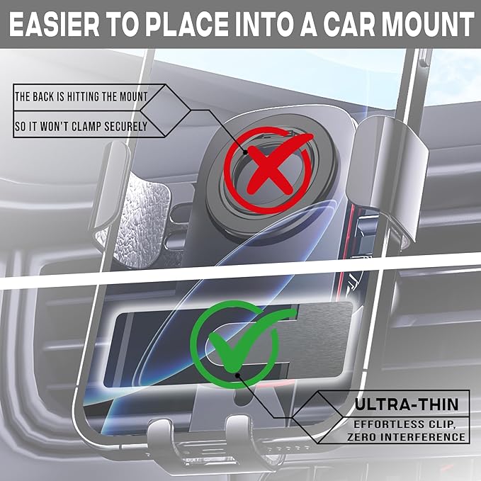 - Wireless Charging Friendly: The ultra-slim design ensures proper alignment, allowing you to charge your phone wirelessly while it's mounted.