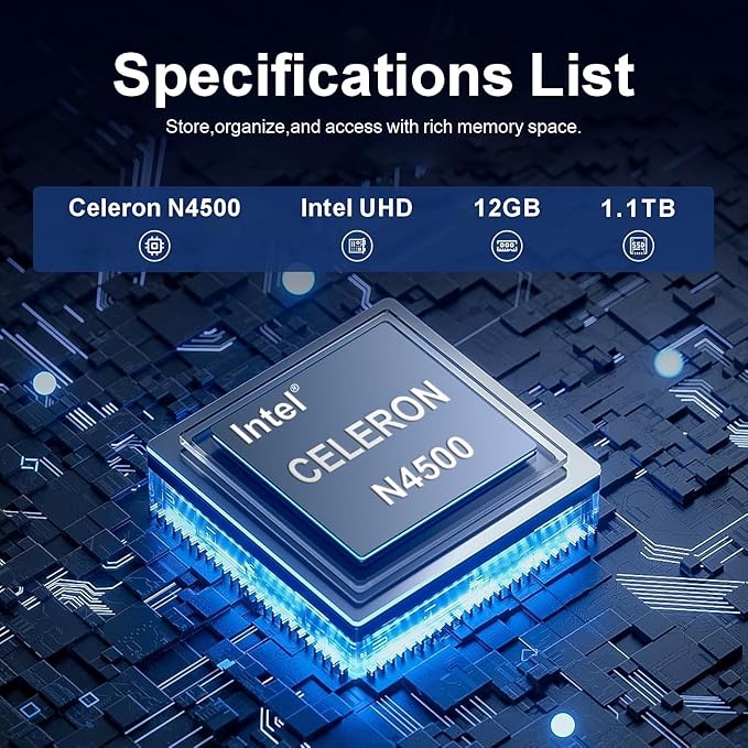 - [Smooth Performance for Everyday Computing] Experience reliable efficiency for your daily routine. The Intel Celeron N4500 Dual-Core Processor (burst frequency up to 2.8 GHz) with Intel UHD Graphics ensures smooth performance for online learning, web browsing, managing documents, streaming content, and handling everyday apps with ease.