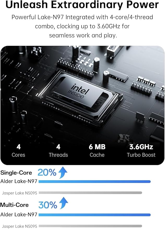 - Huge Leap in Performance: The KAIGERR Laptop computer powered by latest 12th generation processor (4C/4T, 6MB Cache,12W, up to 3.6GHz), performance is much higher than Celeron N5095 or Pentium N95. Built-in 16GB DDR4 and 512GB SSD for more powerful multitasking capabilities