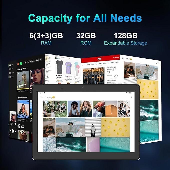 - 【Massive 128GB Storage + Expandable】 32GB built-in + 128GB microSD support stores 10,000+ photos, 50+ apps, or 40+ HD movies. Ideal for students' e-books, kids' games, and work documents