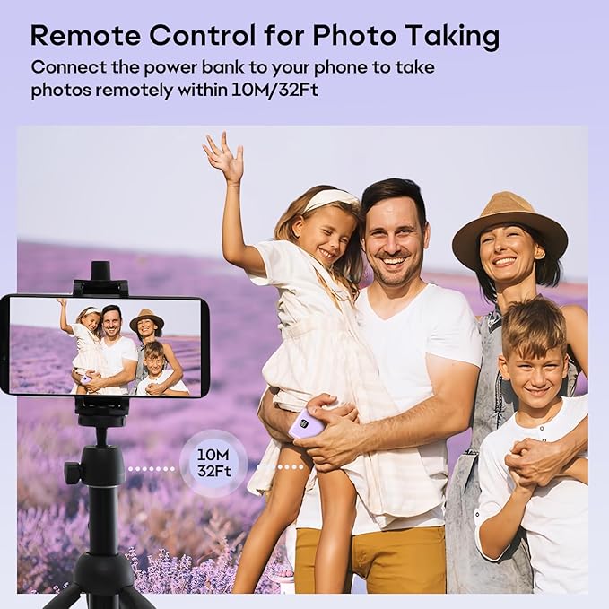 - Remote Wireless Camera Control: Effortlessly capture group selfies or vlogs with one-touch remote photo triggering on EGIKUYE portable chargerโperfect for vloggers, travelers, and content creators.