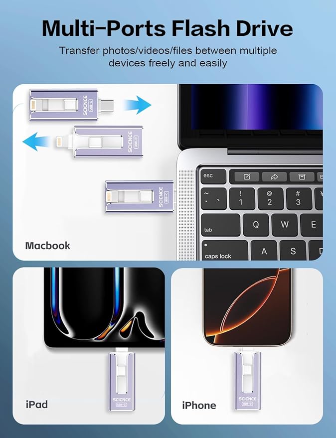 SCICNCE 512GB Flash Drive Intended for iPhone, USB Memory Stick Storage Backup for Photos Videos, Plug and Play No APP Required, Compatible with iPhone iPad Android and Computers (Purple)