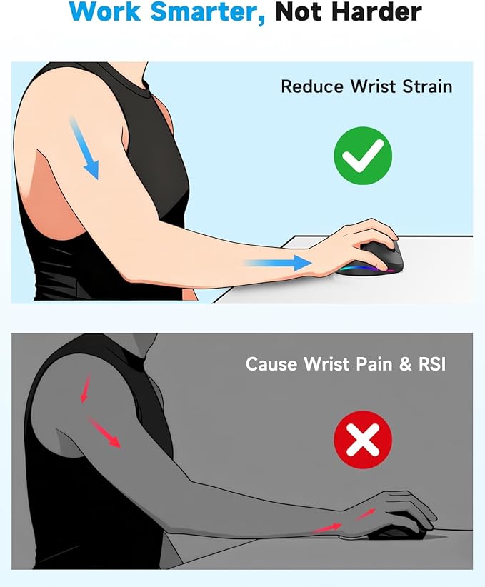 - Programmable Buttons: Customize shortcuts and boost efficiency with fully programmable buttons. A truly smart ergonomic mouse that adapts to your workflow and keeps you in control. The RGB light can also be customized in different colors by using an app downloaded on your computer. (See details in the packaged Quick Guide)