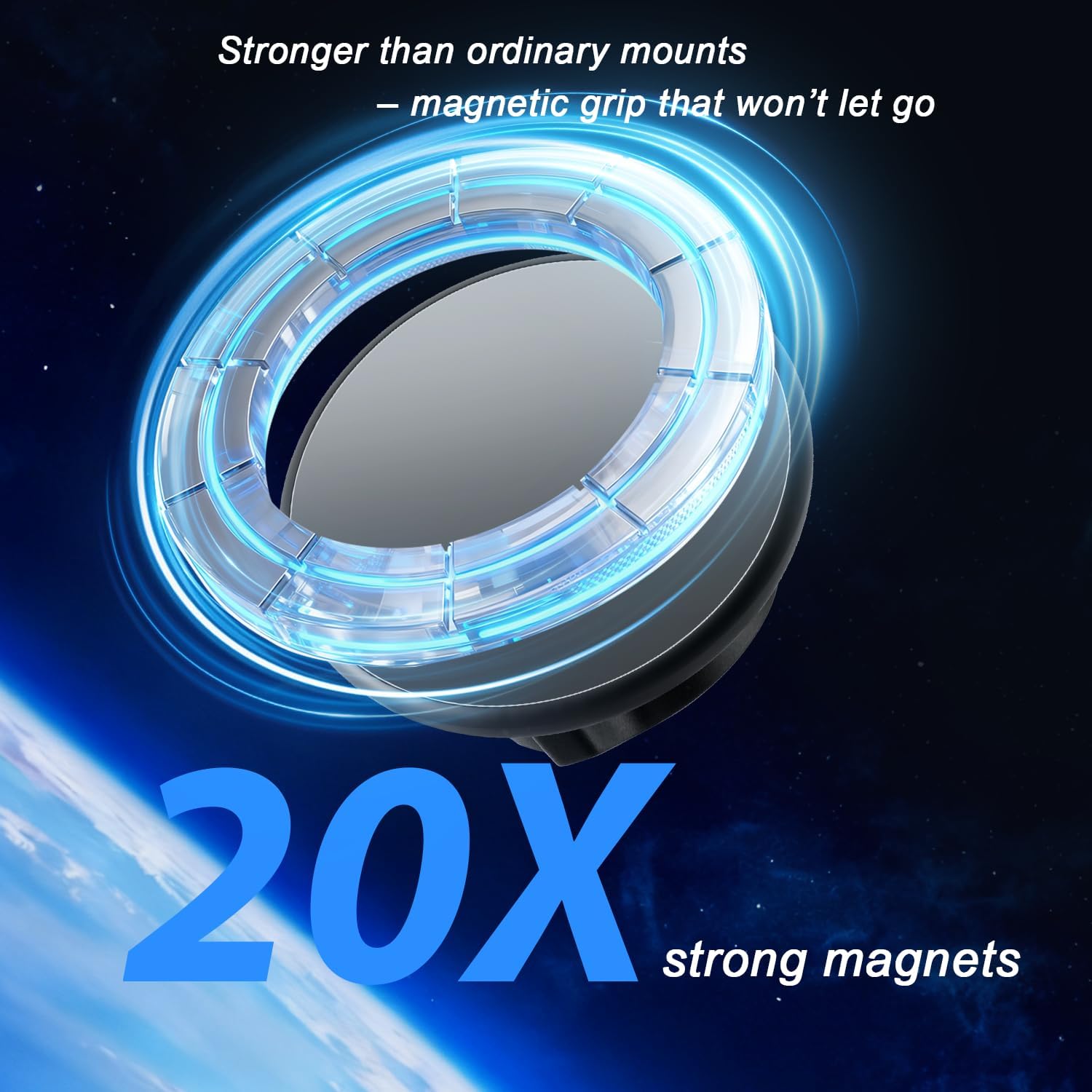 - 【Powerful Magnetic Hold】Built with 20 strong N52 magnets, this mount keeps your phone firmly in place even on rough roads. Fully compatible with MagSafe iPhone (iPhone 12 to iPhone 17). If you're using a case, make sure it is MagSafe-compatible. If not, you can attach the included small metal ring to your case (provided the case has a flat surface).